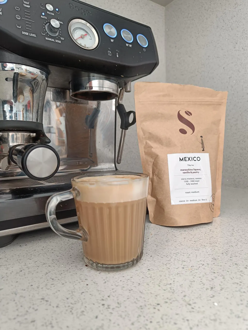 This coffee is a find;  one that is super sweet on espresso with a marzipan pastry body with a medium acidity.  When paired with milk, there is maraschino liqueur feel to the cup, giving it a super uniqueness and lovely vanilla after taste. Juicy on filter, it is also a delightful clean and crisp coffee with a nutty finish. We love its delicate body, touch of cherry and stone fruit, and the rounded vanilla and caramel finish to the cup. Try on AeroPress for an extra special drinking experience.